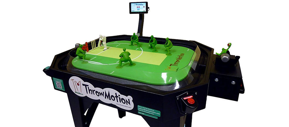 Before producing a 56-inch x 40-inch office version of CricketLive, the game was first developed in a reduced size. TG&A worked closely with ThrowMotion in the early design, providing the Batsman mechanism and one of several bowler mechanisms as well as the basic configuration of the field and its ball-return geometry. Once design features were determined, the final construction was scaled for use in arcades.